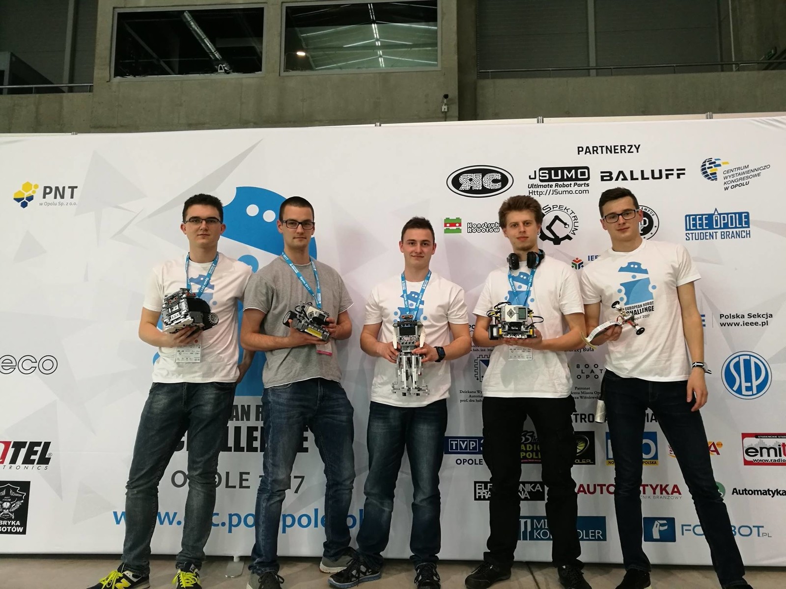Marcin Biszczanik, Marek Ruman, Karol Pyśniak, Jakub Szczap i Marcin Hubacz to osoby reprezentujące Rzeszowską Grupę IT i Koło Naukowe Elektroniki i Technologii Informacyjnych Politechniki Rzeszowskiej podczas European Robot Challenge 2017. Zawody, które odbyły się 13 maja br. w Opolu, dawniej nosiły nazwę Opolski Festiwal Robotyki, w tym roku miały one rangę międzynarodową. Głównym celem współzawodnictwa jest popularyzacja nauk technicznych i zaawansowanych technologii przez wzbudzenie zainteresowania robotyką, automatyką, elektroniką, informatyką, programistyką oraz nowymi technologiami.