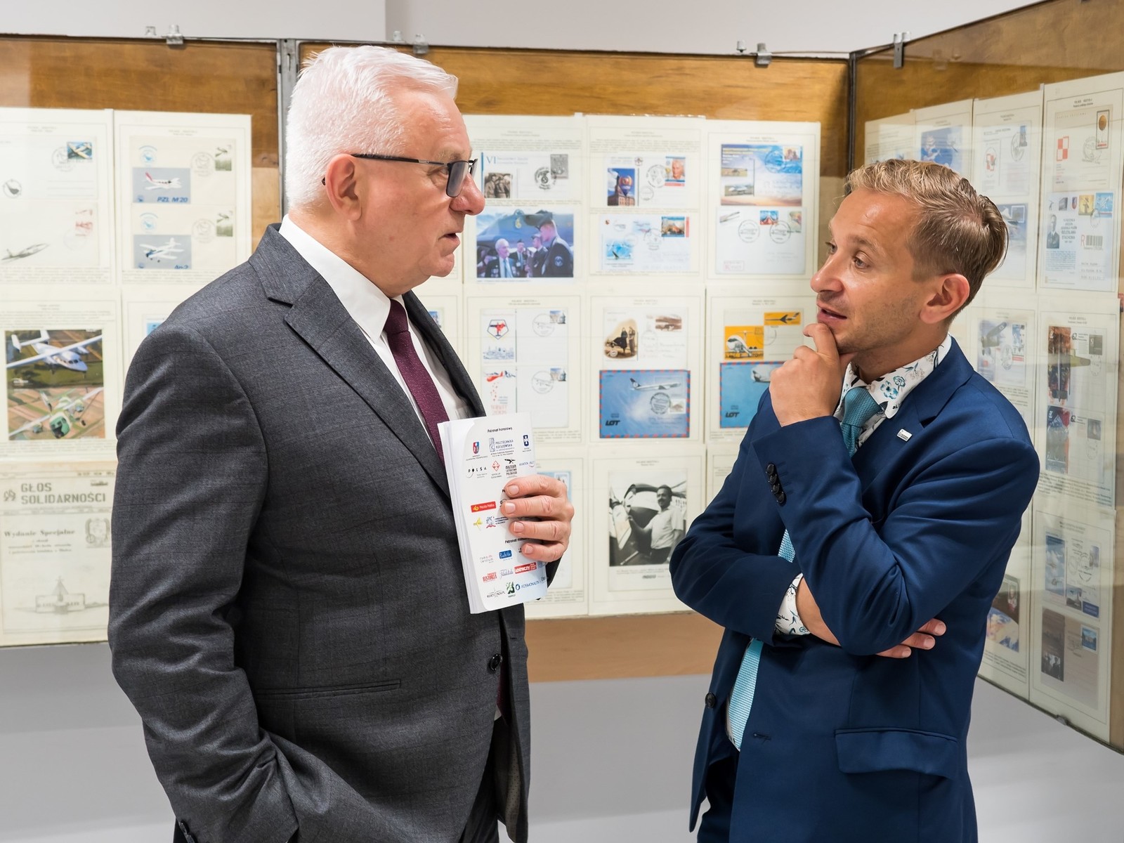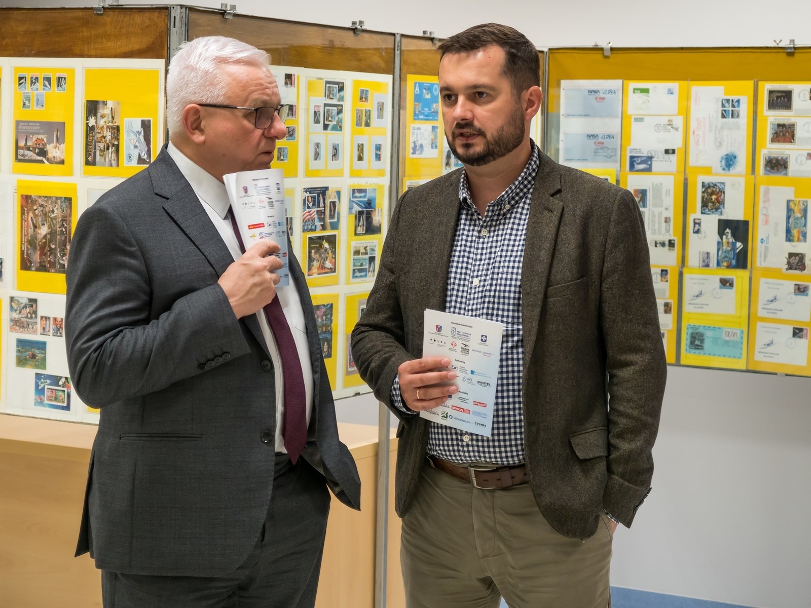 Wystawa Filatelistyczna pt. „Lotnictwo i kosmos. Podróż w przestrzeń”. Od lewej: prof. PRz A. Marciniec i dr inż. A. Masłoń,