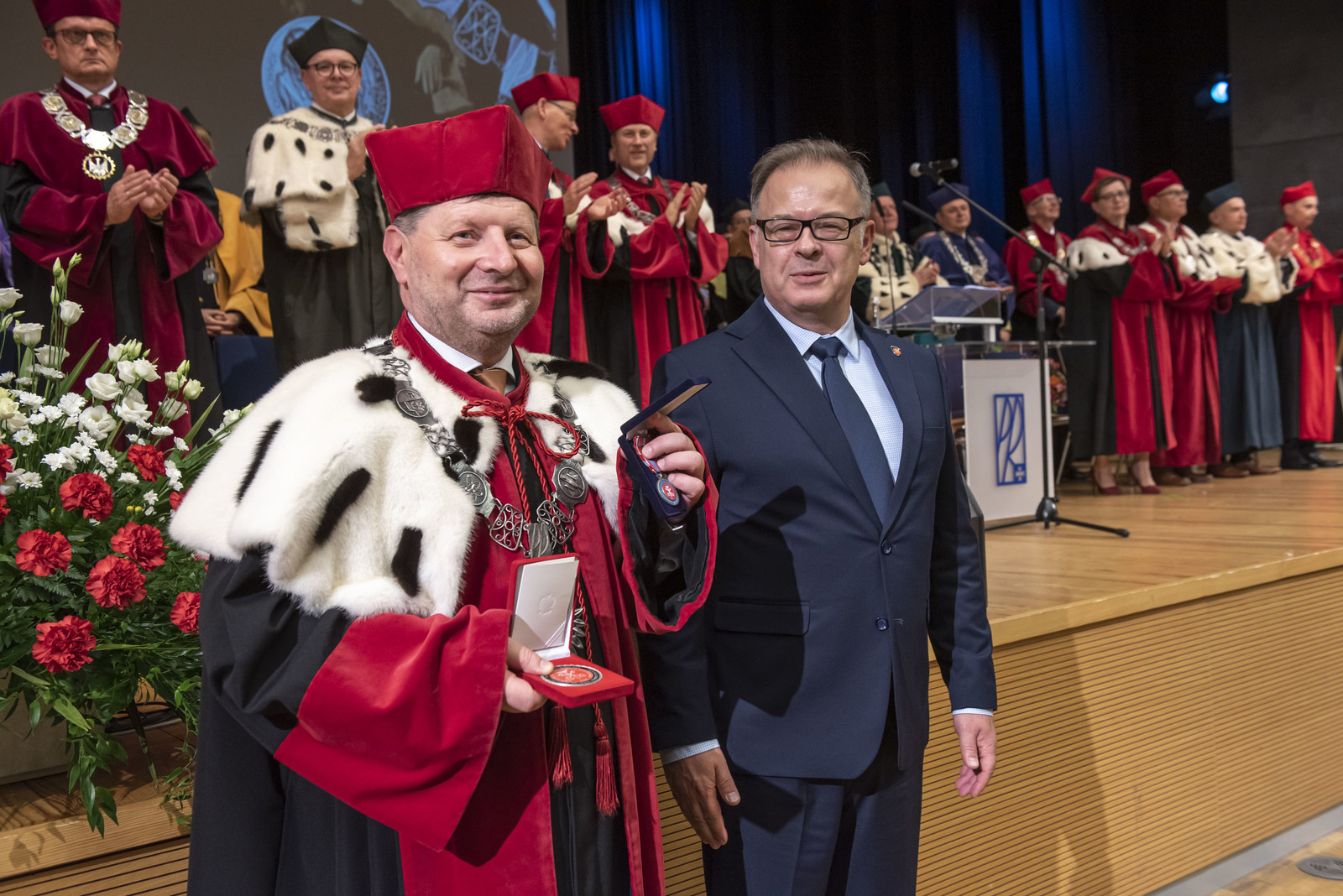 Podczas uroczystości wręczono również odznaczenia państwowe. Srebrne Krzyże Zasługi otrzymało 7 pracowników, a Brązowe Krzyże Zasługi – 15 pracowników uczelni. Medalem Złotym za Długoletnią Służbę zostało odznaczonych 15 osób, 18 osób – Medalem Srebrnym za Długoletnią Służbę i 7 osób Medalem Brązowym za Długoletnią Służbę. 21 pracowników naszej uczelni zostało odznaczonych Medalem Komisji Edukacji Narodowej, 6 osób otrzymało medal „Zasłużonym dla Politechniki Rzeszowskiej”, a jedna Srebrny Medal „Za zasługi dla obronności kraju”. Tę uroczystości poprowadził prorektor ds. studenckich prof. dr hab. Grzegorz Ostasz (relację z tej części uroczystości zamieścimy w osobnej aktualności).