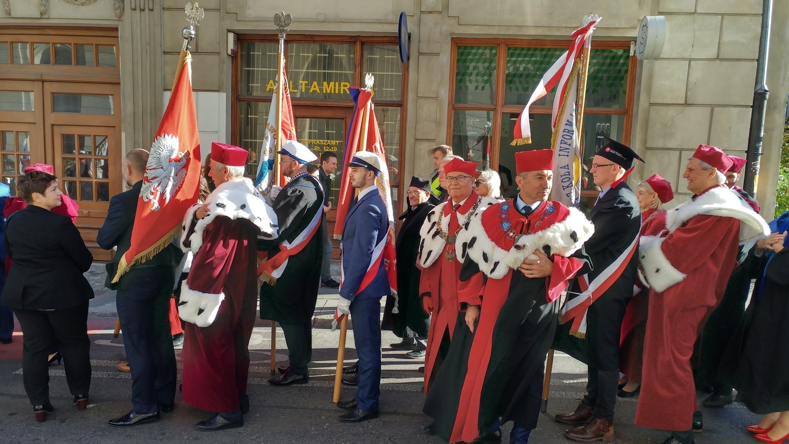 Uroczystości rozpoczęły się mszą świętą w Kościele Św. Krzyża. Po mszy, w uroczystym przemarszu, przedstawiciele świata nauki i szkolnictwa wyższego przeszli spod bramy Uniwersytetu Warszawskiego do Teatru Polskiego.