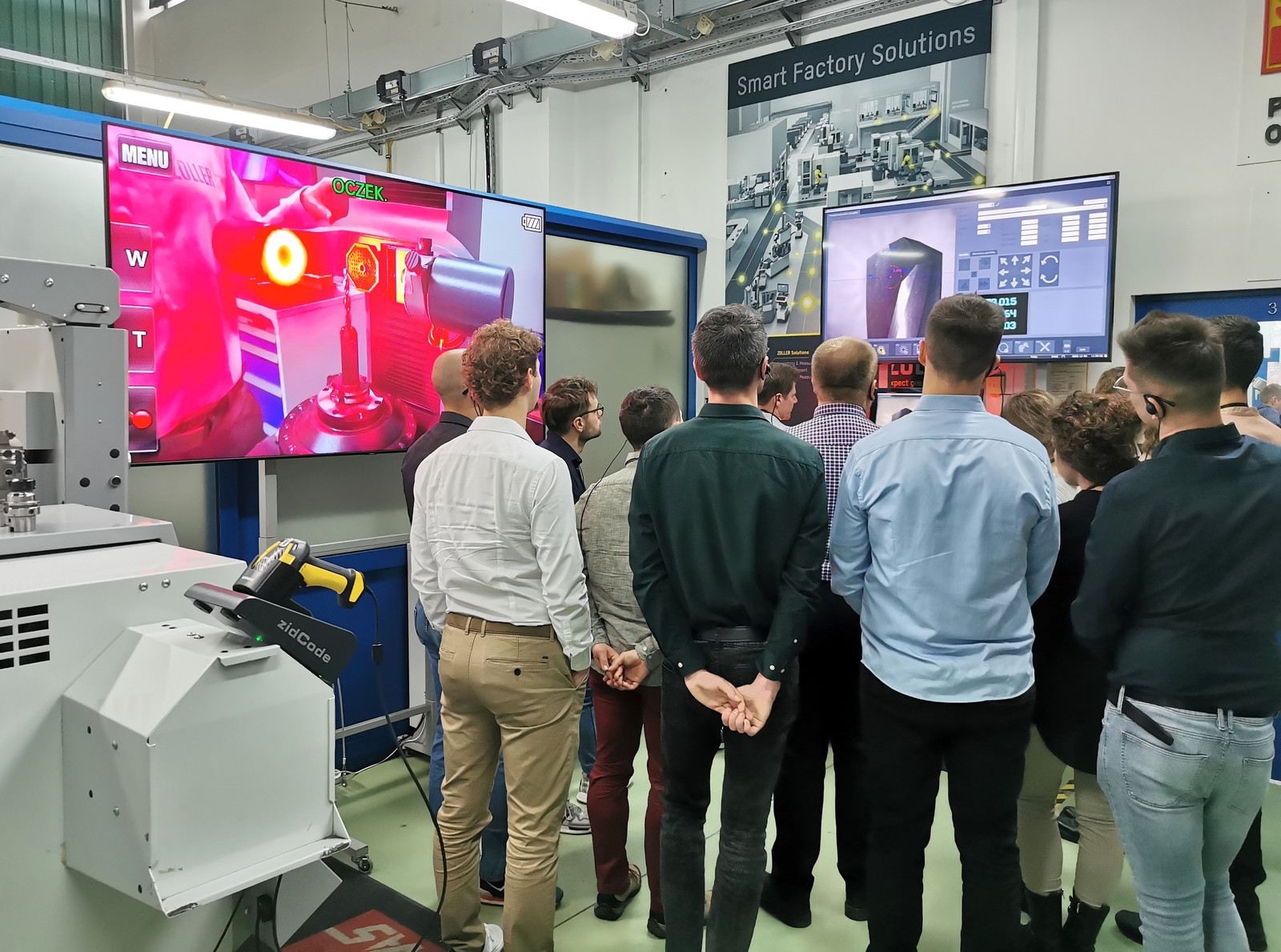 • pokazy automatycznego przesyłu danych narzędziowych bezpośrednio do obrabiarek CNC stanowiące integralny element zajęć demonstracyjnych i były realizowane z wykorzystaniem nowo wdrożonego w katedrze rozwiązania ZOLLER zidCode – przykłady przeprowadzono z zastosowaniem kodów QR, dedykowanego czytnika QR i systemu RunMyVirtualMachine, demonstrując praktyczne możliwości cyfrowej integracji systemów pomiarowych z procesami przygotowania i realizacji produkcji.