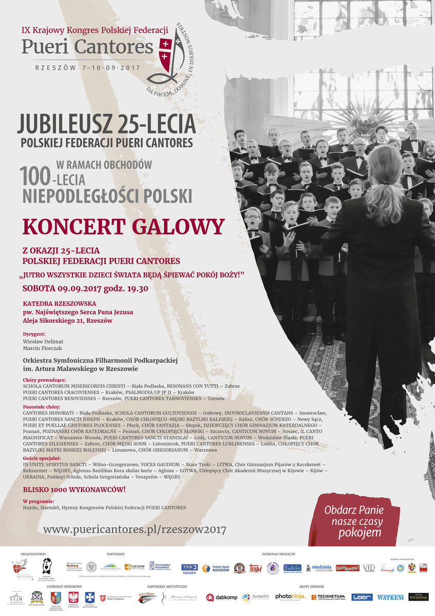Od 7 do 10 września br. odbędzie się w Rzeszowie IX Krajowy Kongres Polskiej Federacji Pueri Cantores. Jest to spotkanie chórzystów z całej Polski, w trakcie którego młodzi ludzie mają okazję do wspólnych spotkań, koncertów i modlitwy przez śpiew chóralny. W wydarzeniu na zaproszenie organizatorów Polskiej Federacji Pueri Cantores i Katedralnego Chóru Chłopięco-Męskiego Pueri Cantores Resovienses weźmie udział około tysiąc chórzystów z całej Polski (blisko 30 chórów) i z zagranicy (Litwy, Łotwy, Ukrainy i Węgier).